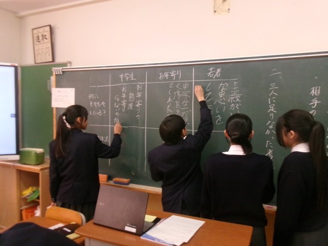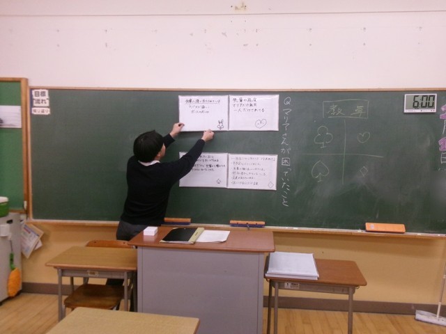 授業では、「自分ならどうするか」「相手はどのような気持ちか」といった視点から、一人一人がじっくりと考える時間を設けました。その後、グループで意見を共有し、多様な考えに触れながら理解を深め、最後は、各グループの考えを全体で発表しました。いじめを許さない学級・学校づくりのために自分たちにできることを具体的に考えることができ、有意義な学びの時間となりました。