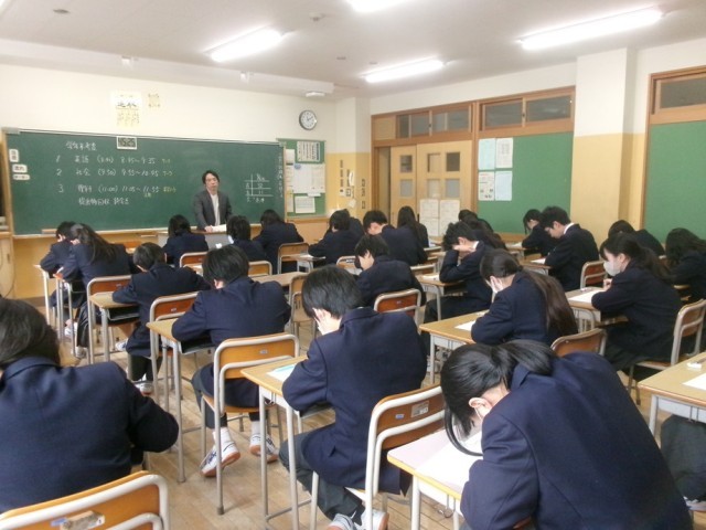 26日・27日の2日間にわたり、7年生と8年生が学年末考査に臨んでいます。実施教科は国語・数学・英語・理科・社会の5教科。これまで積み重ねてきた学習の成果を発揮する大切な機会です。