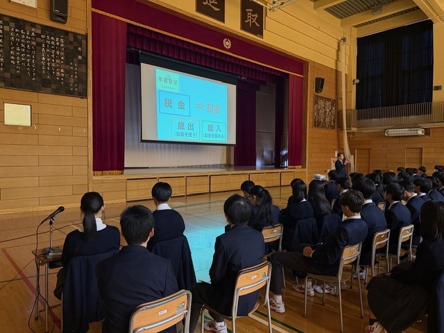 27日は租税教室を行い、東京都税理士会より税理士の先生をお招きしました。税の仕組みや役割、私たちの生活との関わりについて具体的に教えていただき、社会を支える一員としての自覚を高める機会となりました。