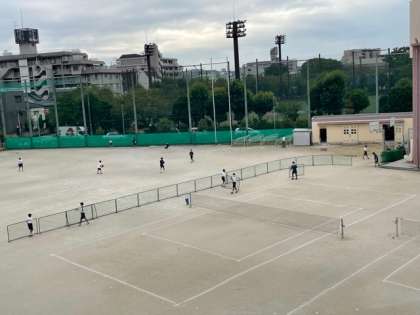 午後になって雨がやみました。水はけが良い校庭は、部活動もできそうです。良かったですね。早速準備に入るソフトテニス部・野球部の様子です。