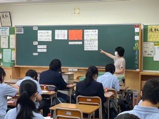 育児について学習してきた座学から、豆本の制作について説明している場面です。