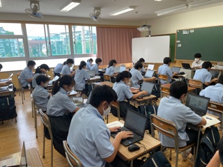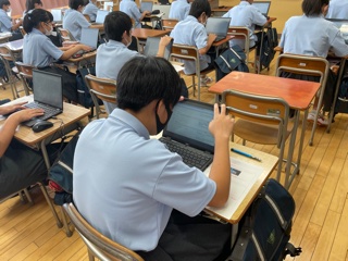 シーンと静寂に包まれた教室で、各自がキーボードをたたいている音だけが聞こえています。