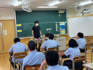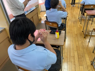 仕上げの段階で、外側の飾り付け作業に入っている生徒が多かったです。早くに終わった生徒は、次の作品「だるま」の構想を考えるワークシートに取り組んでいました。だるまに関する情報を検索するためにChromebookを使っている生徒もいます。