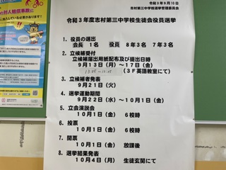 今週から生徒会役員選挙の公示期間になりました。現生徒会役員の様々な取り組みを引き継ぎ発展させていく意欲ある生徒が多く立候補してほしいですね。