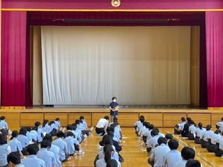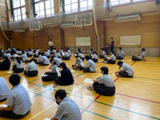 数学科の鈴木先生が、算数パズルを使って簡単な聞き取りトレーニングを行いました。