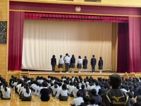新型コロナウイルス感染症予防のため、1クラスずつ分散して十分な間隔をとりながら基本的な動作(突き、蹴り。受け身)を教わりました。