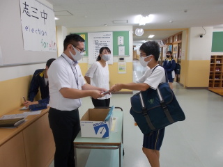 今朝、生徒昇降口で漢字検定の申し込み受付をおこないました。