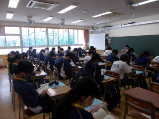 写真は8年生の朝読書風景です。落ち着いた雰囲気で学校生活が始まります。