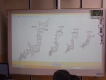 右写真:電子黒板に妙に歪んだ日本地図が映し出されています。