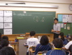 右写真:東京からの時間距離を表した地図 であることを説明する先生。