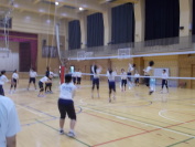 放課後の部活動。今日は体育館でバレー部が練習しているところを見学しました。