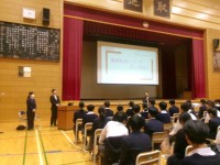 8年生の数学は少人数指導で行っています。写真は松澤先生が教えているグループの授業風景です。「定理の逆」について学習しています。定理とは文章化すれば「〜ならば〜である。」になりますが、その「仮定と結果」を入れ替えることを定理の逆と言います。この入れ替えた場合に正しさが保証されるかどうかが問題です。この部分は少し難しい言葉で言えば「論理的思考力」の根幹に関わる部分なので、とても大事です。