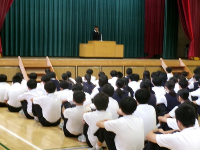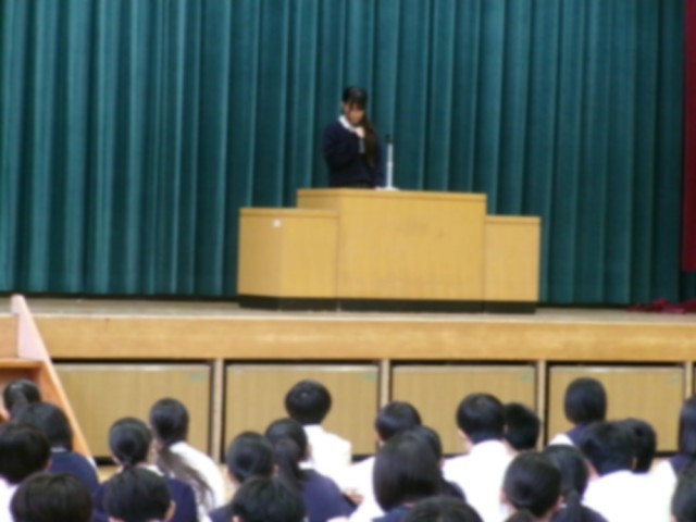 10月に行われる大きな学校行事、「合唱コンクール」について、9年生の実行委員長からの言葉がありました。
