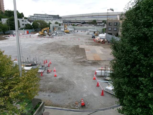 さて、今日は工事が進む校庭の様子を2階から撮影してみました。