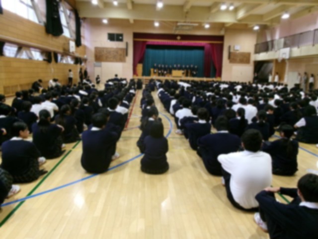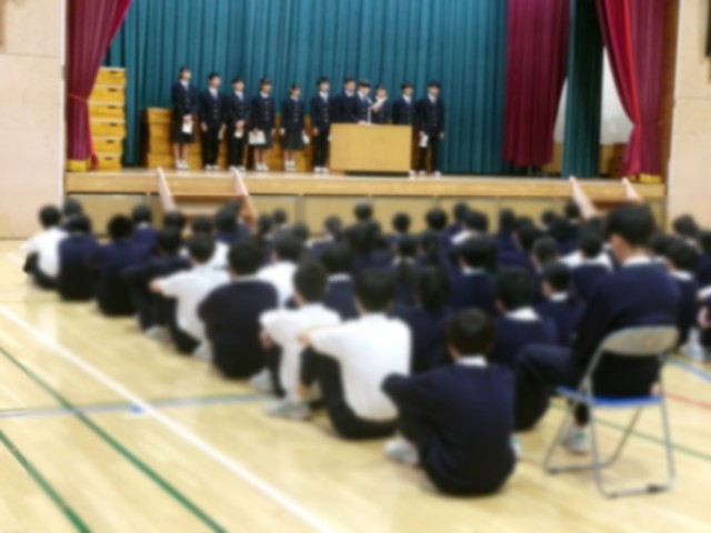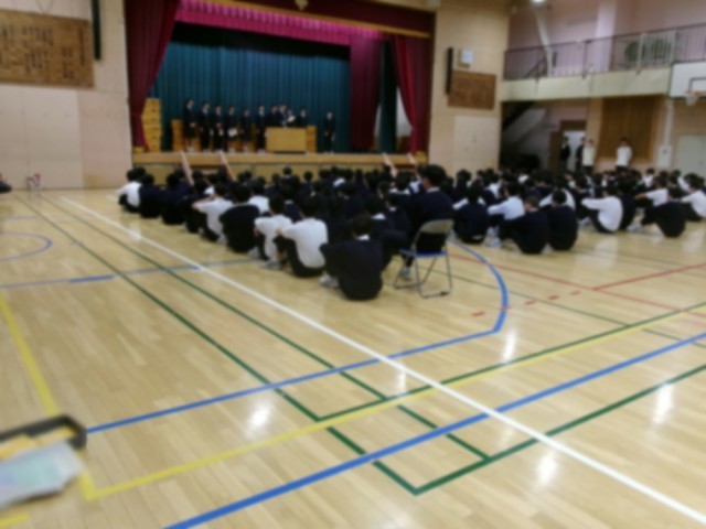 今年度後期の生徒会長および各専門委員長が壇上に立ち、