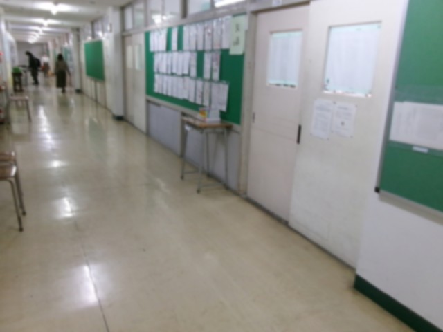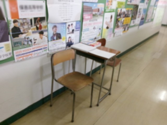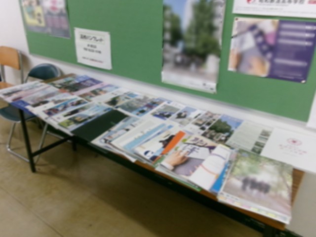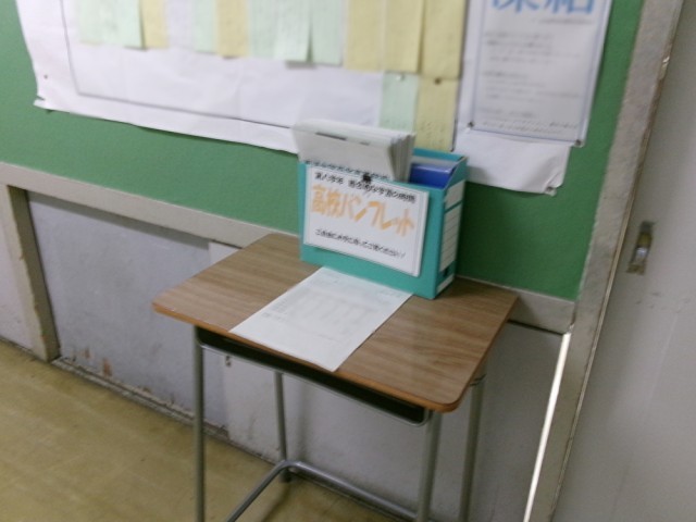 上級学校訪問を終えた8年生の各教室の前にも、進路学習で使用した高校パンフレットが置いてあります。