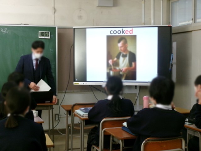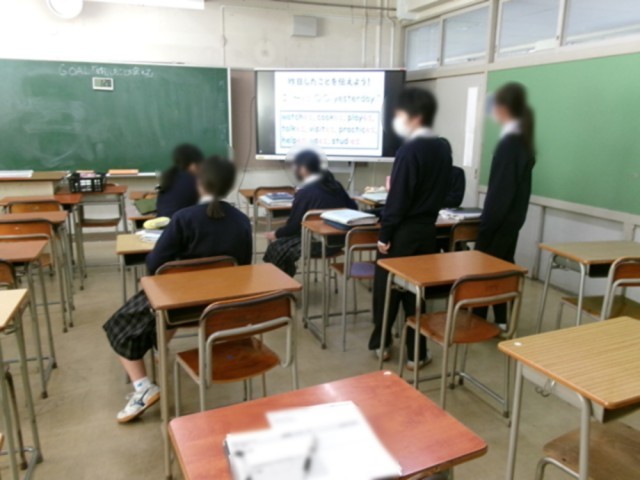 英語の授業。「昨日したことを伝える」という目標に向かい、