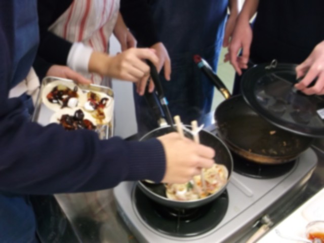 餃子の皮を使って作ったピザ、生徒も自信があった様子で、