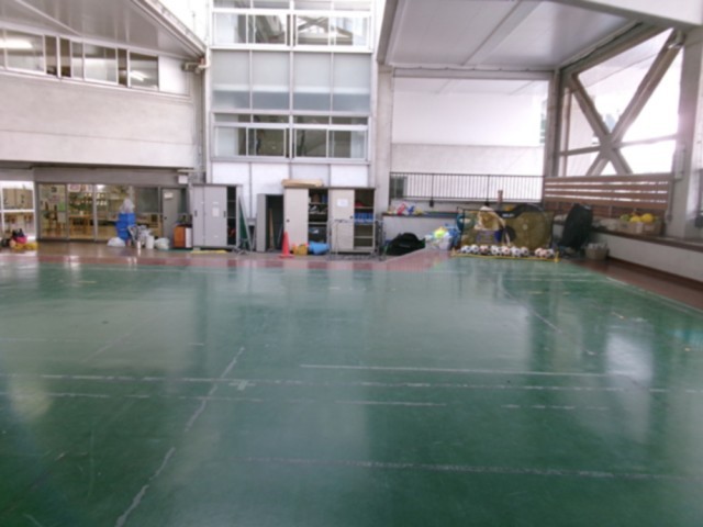 工事で校庭が使えないため、できる体育の授業はマルチを使って行っています。