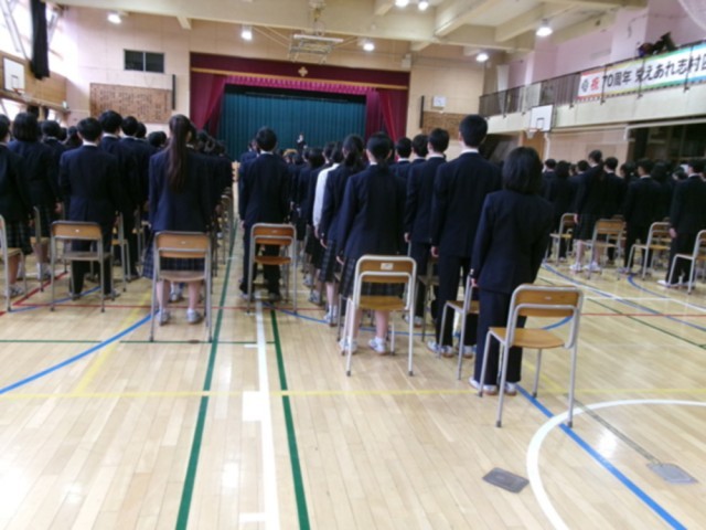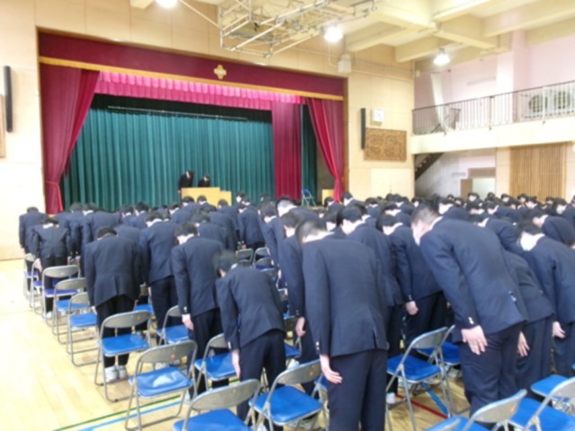 在校生も卒業を祝福する気持ちで臨み、卒業生の背中を見つめていました。