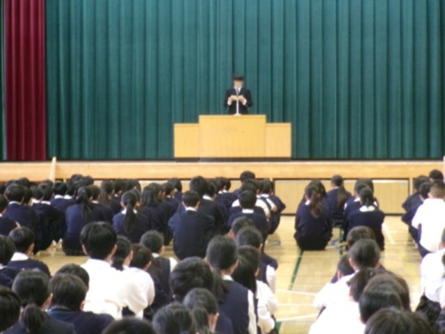 生徒会長から、今年度の初めにあたり、早く慣れてしっかり生活していこうとの言葉がけがあり、