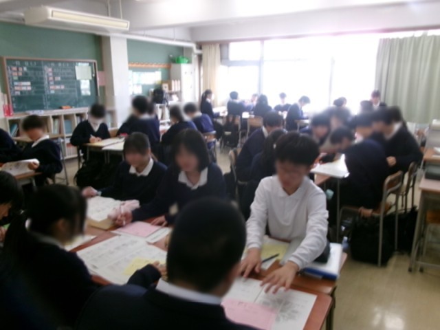 教室に戻り1時間目の学活では、各クラスで議案書討議を行いました。
