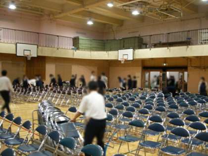 各学年、最後のクラス練習を終えた後、体育館で前日指導がありました。