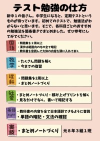 4月1日になりました。新年度のスタートです。今日から3回にわたり、旧8年生から新入生へ向けた「学習やテスト勉強についての学校紹介」をお届けします。 最近では、真っ白なノートに黒板の文字を書き写すだけの...