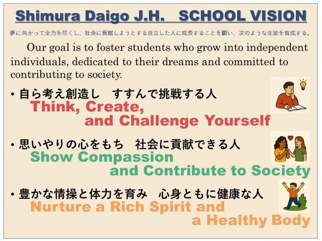 夢に向かって全力を尽くし、社会に貢献しようとする自立した人に成長することを願い、次のような生徒を育成する。