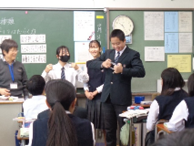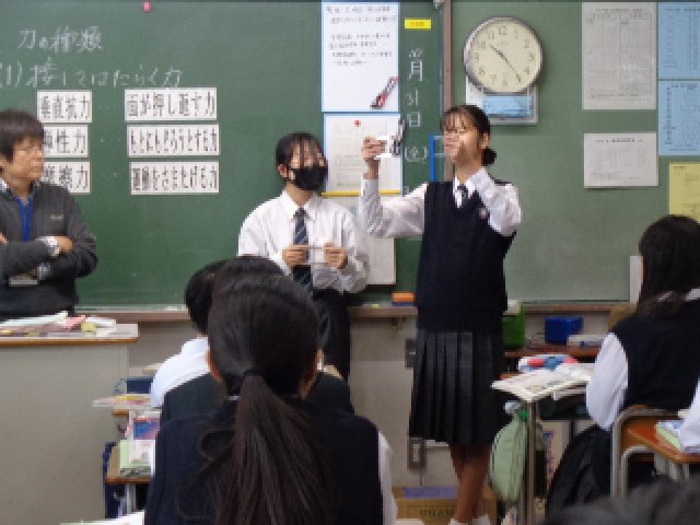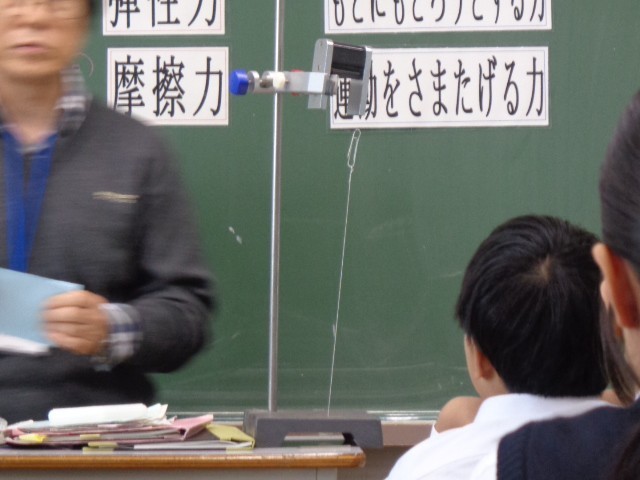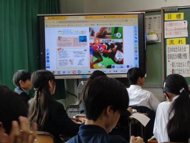 できごと 今日の理科の授業では、「力の種類やはたらき、性質について、身の回りの現象を通して考察する」ことを目標に学習を進めました。今回の授業内容までが期末考査の範囲となります。 まず、教科書に載っているスポーツ選手の写真を見ながら、「支える」「変形させる」「運動の状態を変える」という力のはたらきについて確認しました。次に、身近な力の種類として「接してはたらく力」と「離れてはたらく力」の違いを学びました。 授業では、磁石の引き合う力や反発する力を実際に試し、その強さを体感しました。さらに、磁力が物体を通すかどうかを確かめる実験では、生徒が「通す」「通さない」を挙手で予想し、結果は使用されたすべての物体で磁力が通るという興味深いものでした。 生徒たちは終始興味をもって取り組み、力の不思議さを実感する50分間となりました。 +7