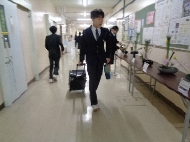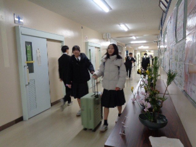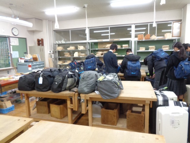本校では、移動教室に持って行く荷物を前日に学校へ持ち込むことになっています。出発が日曜日となるスキー教室に向け、2日前の本日金曜日に荷物の持ち込みを行いました。生徒たちは、いつもより少し早めに登校し、技術室へ荷物を運び入れ、ネームタグを取り付けて準備を整えました。