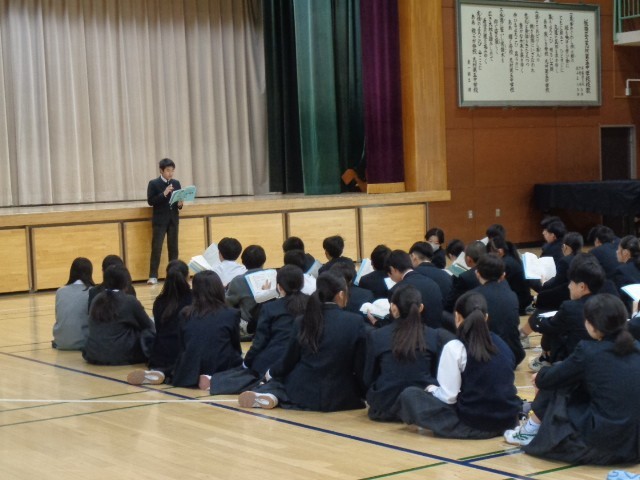 また、8年生から7年生へは、職場訪問に向けて、職場ならではの雰囲気や学びを大切にすること、身だしなみや感謝の気持ちを忘れず行動すること、学んだことをしっかりまとめて発信することなどが語られました。