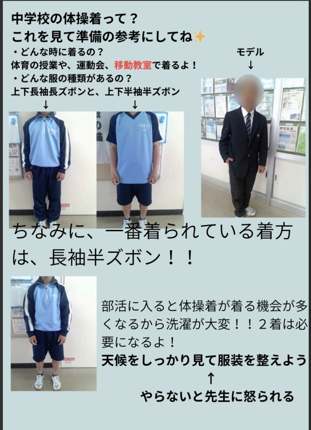 新入生の皆さんへ「標準服・体操服の着こなし」