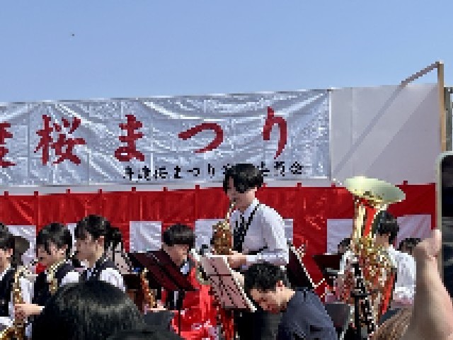 3月22日(日)、地域の「第46回蓮根桜まつり」が開催されました。今年度は本校吹奏楽部にも出演のお声がけをいただき、蓮根花舞台(舞台演芸)の昼休憩の時間に、約30分間の演奏を披露しました。