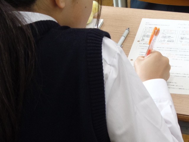 家庭科では、3年間の学習の見通しをもつガイダンスが行われ、自分たちの生活について振り返りました。