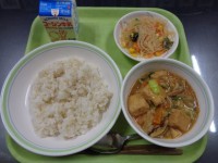 人参やごぼう、じゃがいも、糸こんにゃく、さやいんげんなど、さまざまな食材が入った五目きんぴら。ごま油の香ばしさと一味唐辛子のピリッとした辛みがアクセントとなり、やわらかく煮込まれた野菜のちょうどよい歯ごたえが楽しめる副菜でした。