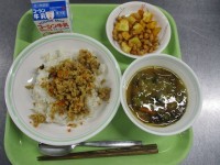 写真は、ご飯の配缶の様子、焼きあがった魚、魚の配缶の様子です。
