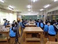 また、夏休み中に校内に英語の表示をつけました。これは、昨年度の9年生が「防災」について学んだとき、「学校が避難所になったときに、外国の人にも分かるよう英語の表示をしたほうがいい」と提案してくれたことがきっかけです。とても素晴らしいアイデアでした。