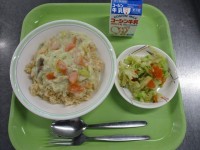 キャベツやもやし、にんじん、コーンが入ったサラダ。さっぱりとした和風ドレッシングで、主菜とのバランスもぴったりでした。