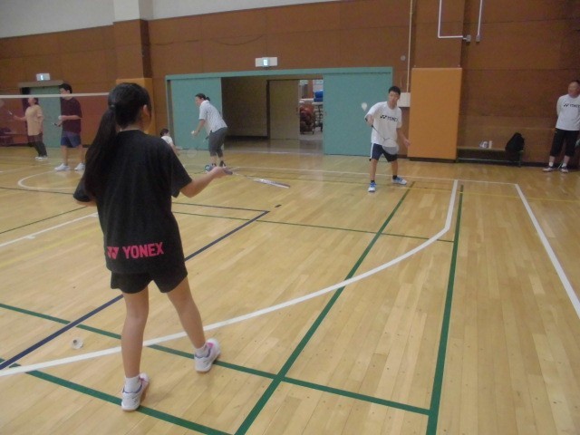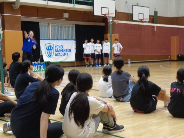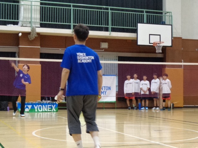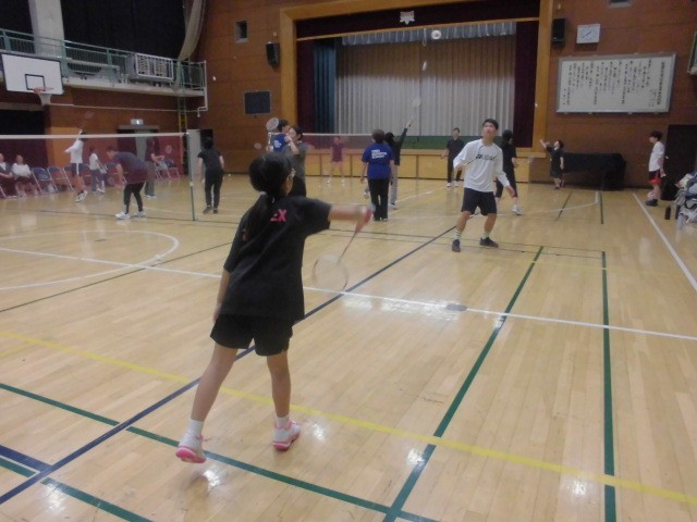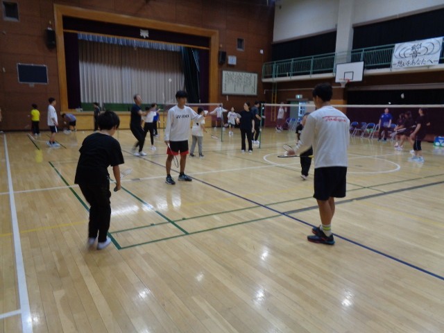 講習会では、本校男子バドミントン部員が指導補助として参加し、小学生とコミュニケーションをとりながら練習をサポートしました。2時間の練習を終える頃には、子どもたちのフォームやショットにも大きな上達が見られました。