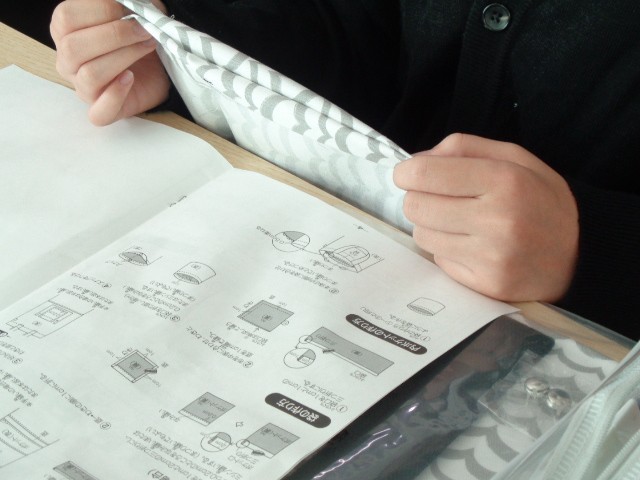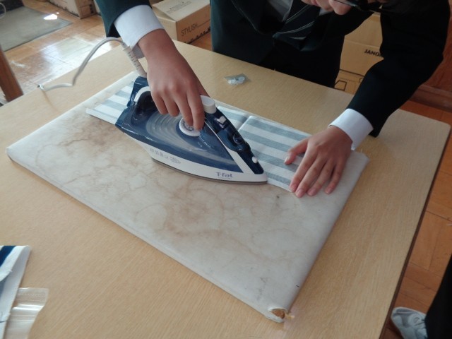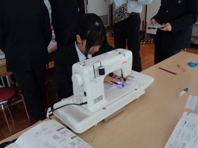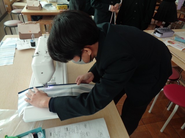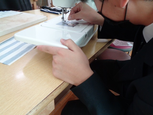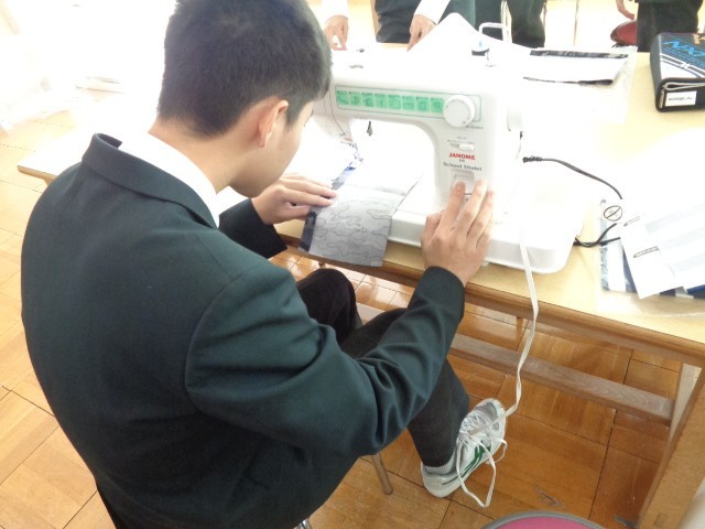 7年生のときに学んだミシンの扱いを思い出しながら、丁寧に作業を進める生徒の姿が見られました。次回はいよいよ本体部分に縫い付ける行程に入ります。