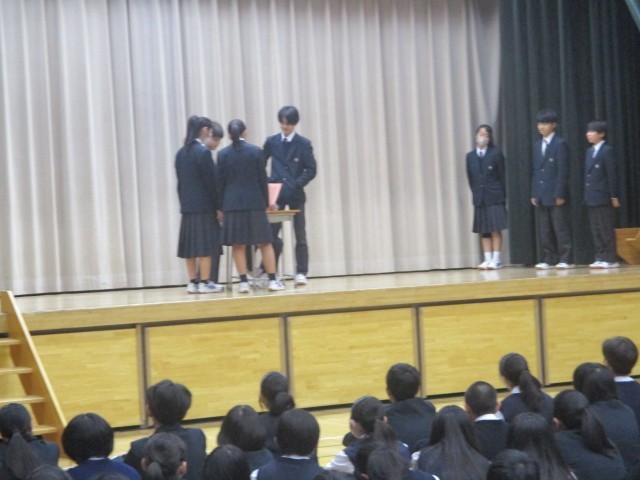 11月の生徒朝礼が行われました。