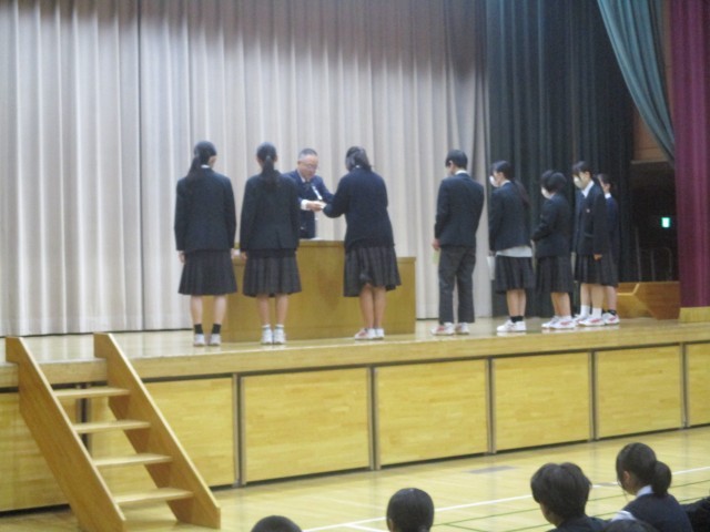 表彰では、茶華道部の生徒が3年間の活動の成果として「奨励賞」の表彰がありました。