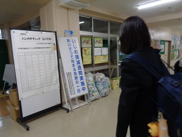 保健委員会の「ハンカチチェック・コンテスト」の集計も掲示されていました。