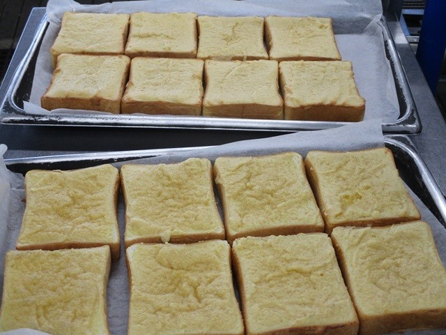 今日のトーストは、ミミはこんがり、中はふんわりの「ビスキュイトースト」。バター・砂糖・卵で作った甘いビスキュイ生地がパンの表面を包み、香ばしく焼き上がっています。アーモンドの風味も重なり、ひと口ごとに焼き菓子のような満足感がありました。