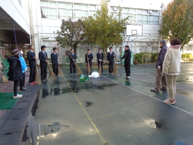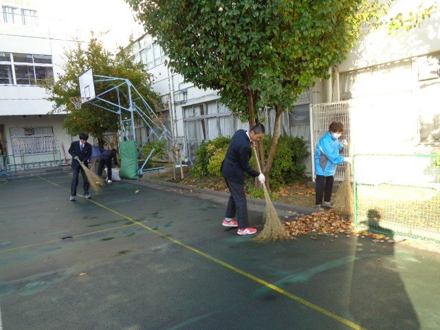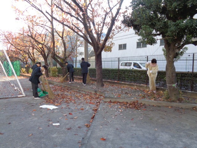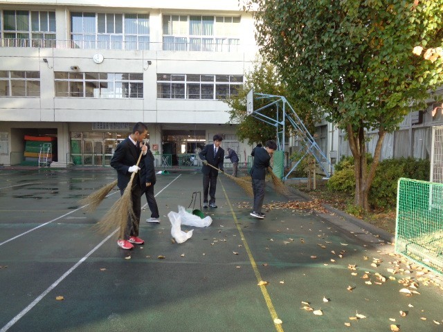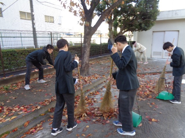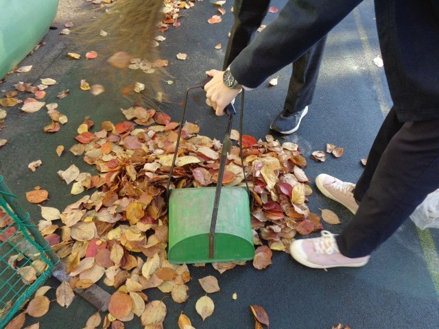 落ち葉掃きボランティア(8年生) 公開日 2025/11/26 更新日 2025/11/26 できごと 生徒会の呼びかけによる「落ち葉掃きボランティア」の2日目は、生徒会長をはじめ8年生7名が参加し、地域の方4名にもご協力いただきました。校門周辺は前日の清掃で整っていましたが、中庭や校庭の樹木の根元には、一日で多くの落ち葉が積もっていました。参加者は15分間、役割を分担しながら協力して落ち葉を集め、学校環境の美化に力を貸してくれました。 +5 生徒会・専門委員会 地域関連