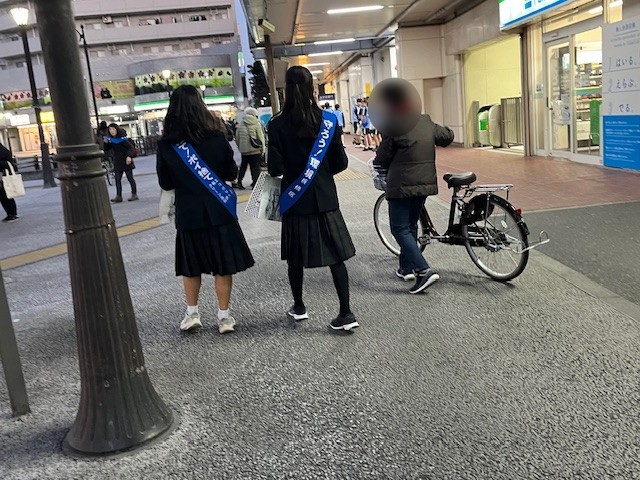 放課後、板橋区・エコポリス板橋環境行動会議・舟渡町会の共催によるポイ捨て防止キャンペーンが、浮間舟渡駅で行われました。本校からは生徒11名がボランティアとして参加し、町会の皆様と一緒にポケットティッシュの配布を行いました。