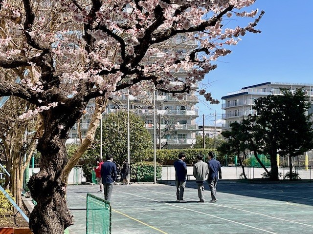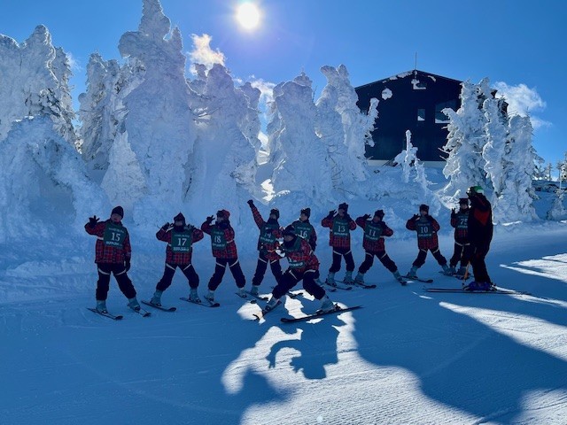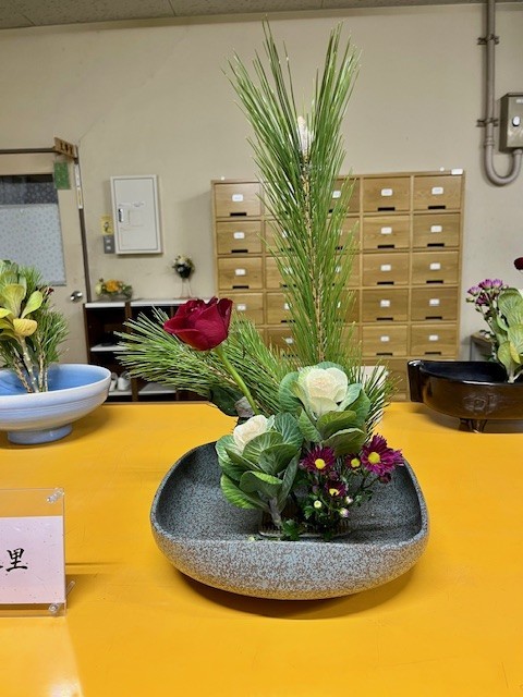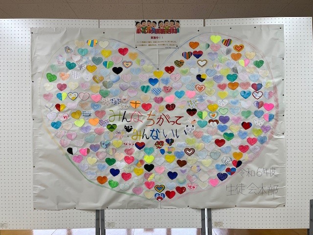 本日の写真は、茶華道部のお正月作品(マツ、ハボタン、バラ、小菊)、8年生スキー教室の様子(頂上と樹氷の中での一場面)、いじめ撲滅週間の取組(生徒会スローガン「みんな違ってみんないい」)、3月の中庭のサクラ(9年生国語の吟行で)、令和6年度卒業証書、校内の掲示物です。