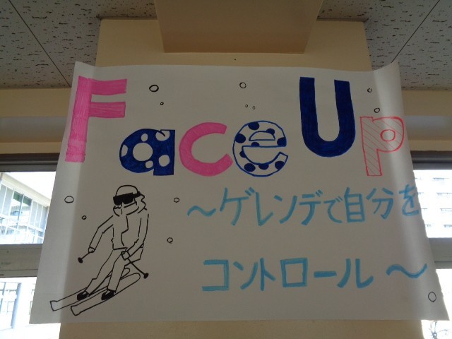 (2枚目の写真は8年生のスキー教室スローガンです。)