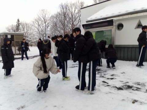 1月25日(日曜日)、8年生はスキー教室に出発しました。気温は0度。午前7時40分、バスは学校を出発し、練馬インターチェンジから関越自動車道に入りました。碓氷軽井沢付近を過ぎる頃から、沿道には雪が見え始め、松代パーキングエリアでは、元気いっぱいに?雪合戦を楽しむ生徒の姿も見られました。